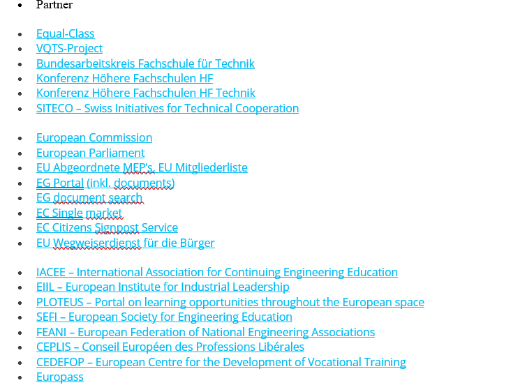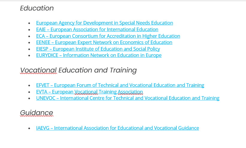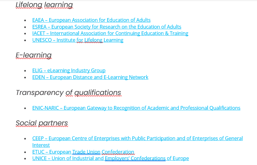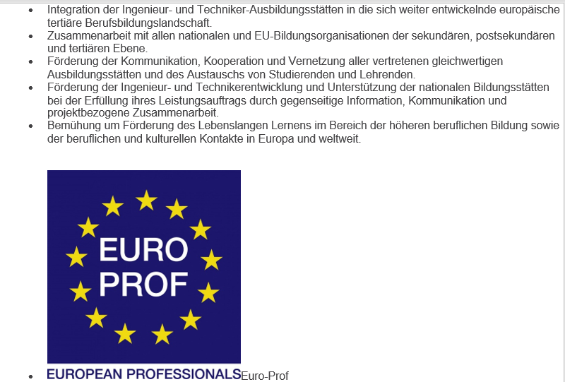 Es soll in den Europäischen Ländern die professionelle und ethische Reputation der höheren nicht-akademischen Berufe verbessert und deren Qualität einem hohen europäischen Standard zugeführt werden. Zudem sollen die weltweite Freizügigkeit, Mobilität sowie Kooperationen und strategische Partnerschaften mit nationalen und internationalen Partnern sowie Solidarität und professionelle wie kulturelle Kontakte in Europa und längerfristig weltweit gefördert werden. Längerfristig soll auch der Austausch von Studierenden und Dozierenden anerkannt und somit Teilnahme an europäischen Förderprogrammen im Bereich der beruflichen Weiterbildung ermöglicht werden.