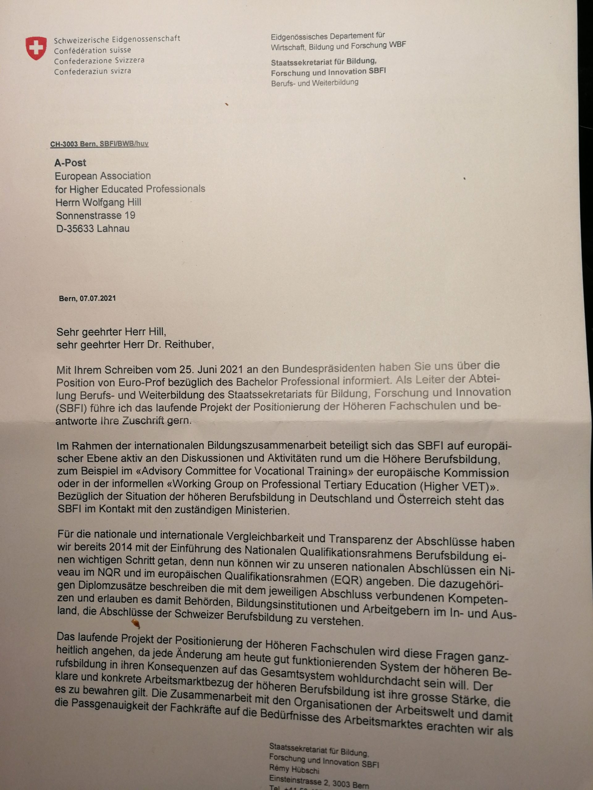 Es soll in den Europäischen Ländern die professionelle und ethische Reputation der höheren nicht-akademischen Berufe verbessert und deren Qualität einem hohen europäischen Standard zugeführt werden. Zudem sollen die weltweite Freizügigkeit, Mobilität sowie Kooperationen und strategische Partnerschaften mit nationalen und internationalen Partnern sowie Solidarität und professionelle wie kulturelle Kontakte in Europa und längerfristig weltweit gefördert werden. Längerfristig soll auch der Austausch von Studierenden und Dozierenden anerkannt und somit Teilnahme an europäischen Förderprogrammen im Bereich der beruflichen Weiterbildung ermöglicht werden.